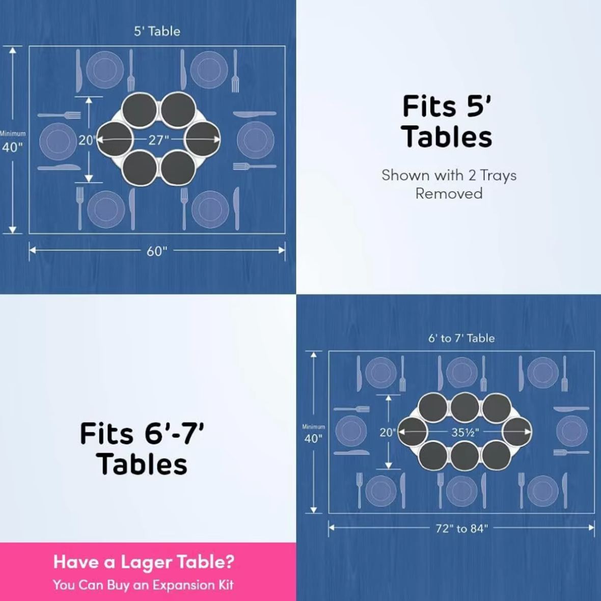 Crafted with premium, lightweight materials, SwivelServe is as durable as it is stylish, ensuring long-lasting use for any occasion. Whether you're hosting a dinner party, enjoying a family meal, or setting up an outdoor picnic, its 360-degree rotation allows everyone to reach their favorite dishes effortlessly. Easy to clean and compact for storage, SwivelServe is the perfect combination of practicality and elegance, elevating every dining setup with convenience and flair.
